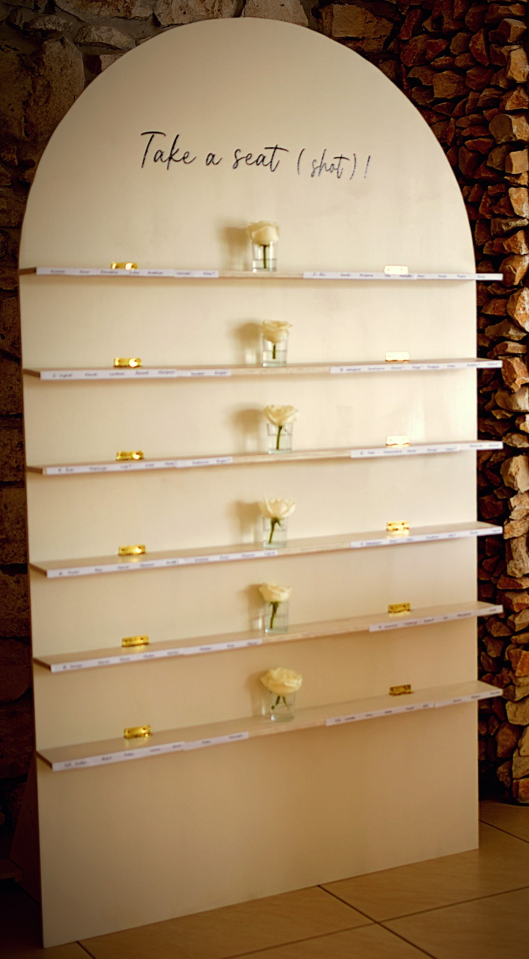 Na sastanku Aurora izrazi želju za velikim stalkom za pića koji bi ujedno poslužio i kao popis uzvanika na način da za svako ime bude postavljena jedna čašica, takav stalak nismo imali ali naravno da smo ga na njih izradili. Ipak treba opravdati naziv Pir & HIR ;-) . Zamolila me ako može njihovo vjenčanje biti prvo na kojem ćemo ga koristiti i naravno da sam joj ispunila želju.