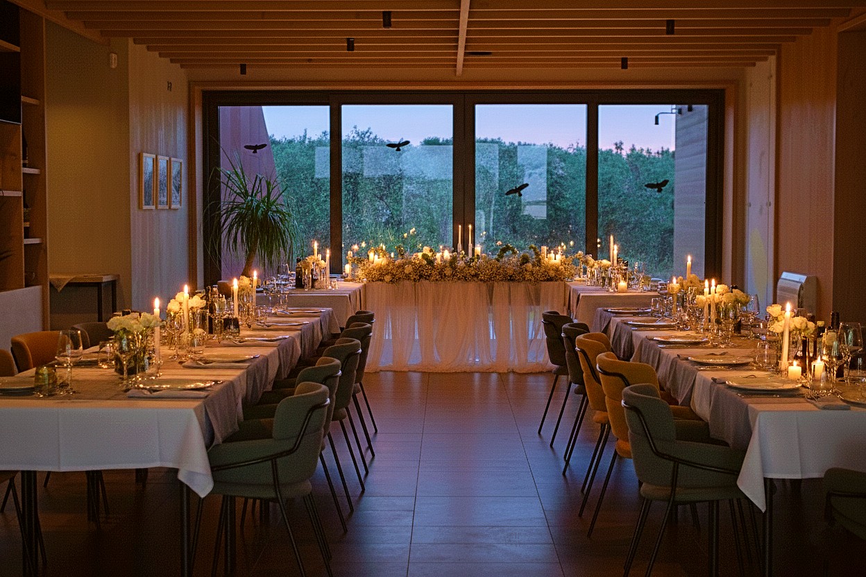Kada je trebalo rasporediti menu kartice s imenima na svaki tanjur, nailazimo na situaciju da mladenkin raspored sa slike ne odgovara postavljenim stolicama u restoranu. O sada smo u još jednom problemu, ali u dogovoru s vlasnikom restorana našli smo soluciju i složili ljude kako treba. A sada krećemo vani na kat na glamurozno sunce dekorirati terasu.